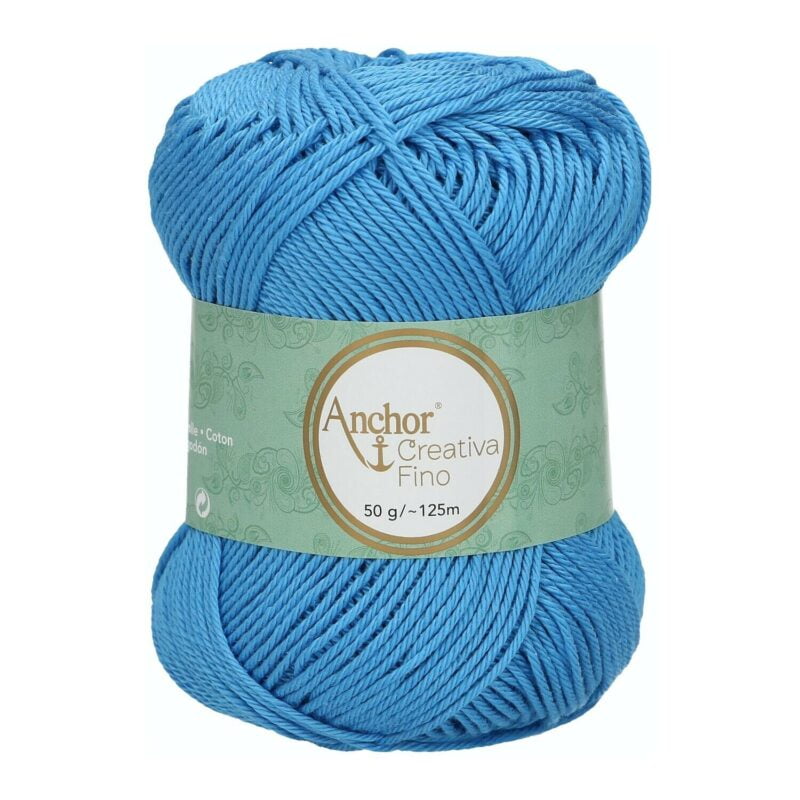 Anchor Creativa è un filato morbido e setoso realizzato in cotone mercerizzato al 100% di alta qualità. È un filato in fibra naturale, ipoallergenico, traspirante e facile da maneggiare, che lo rende perfetto per indumenti, accessori e decorazioni per la casa nelle tecniche di maglieria e uncinetto. Creativa è facile da maneggiare, trasformando il tuo progetto in un viaggio divertente e creativo (la creatività è l’origine del suo nome!). Creativa è prodotto in conformità con gli standard Oeko-tex e tutti i lotti di tinture di colori aderiscono agli standard di solidità globali. Gomitoli da 50 gr – 125 mt Composizione: 100% cotone egiziano Giza Uncinetto: 2,5 mm Ferri: 3 mm